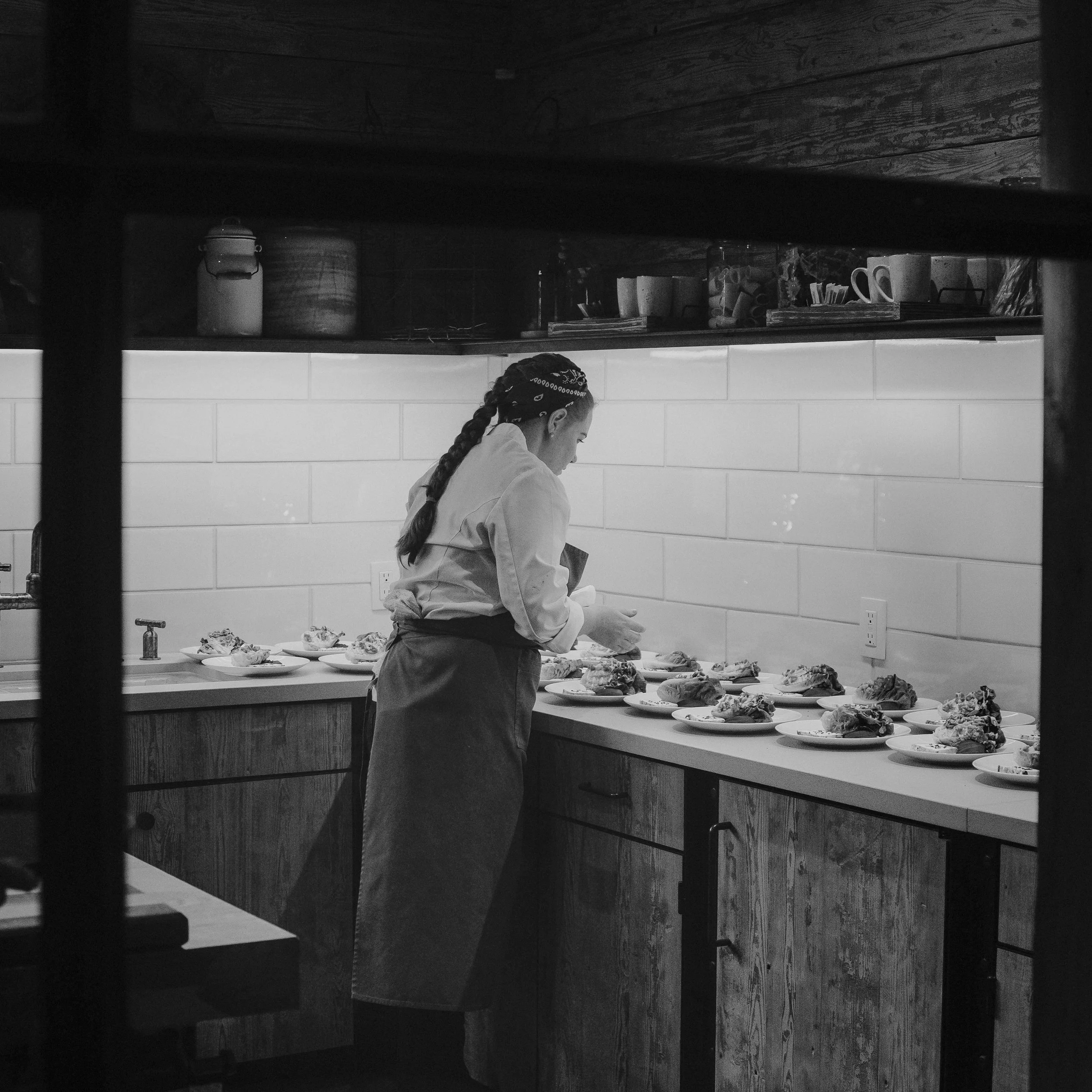 The expanding rings illustrate connection. From hand to harvest, chef to kitchen, they represent the care, craft, and human interaction that shape every leaf.
