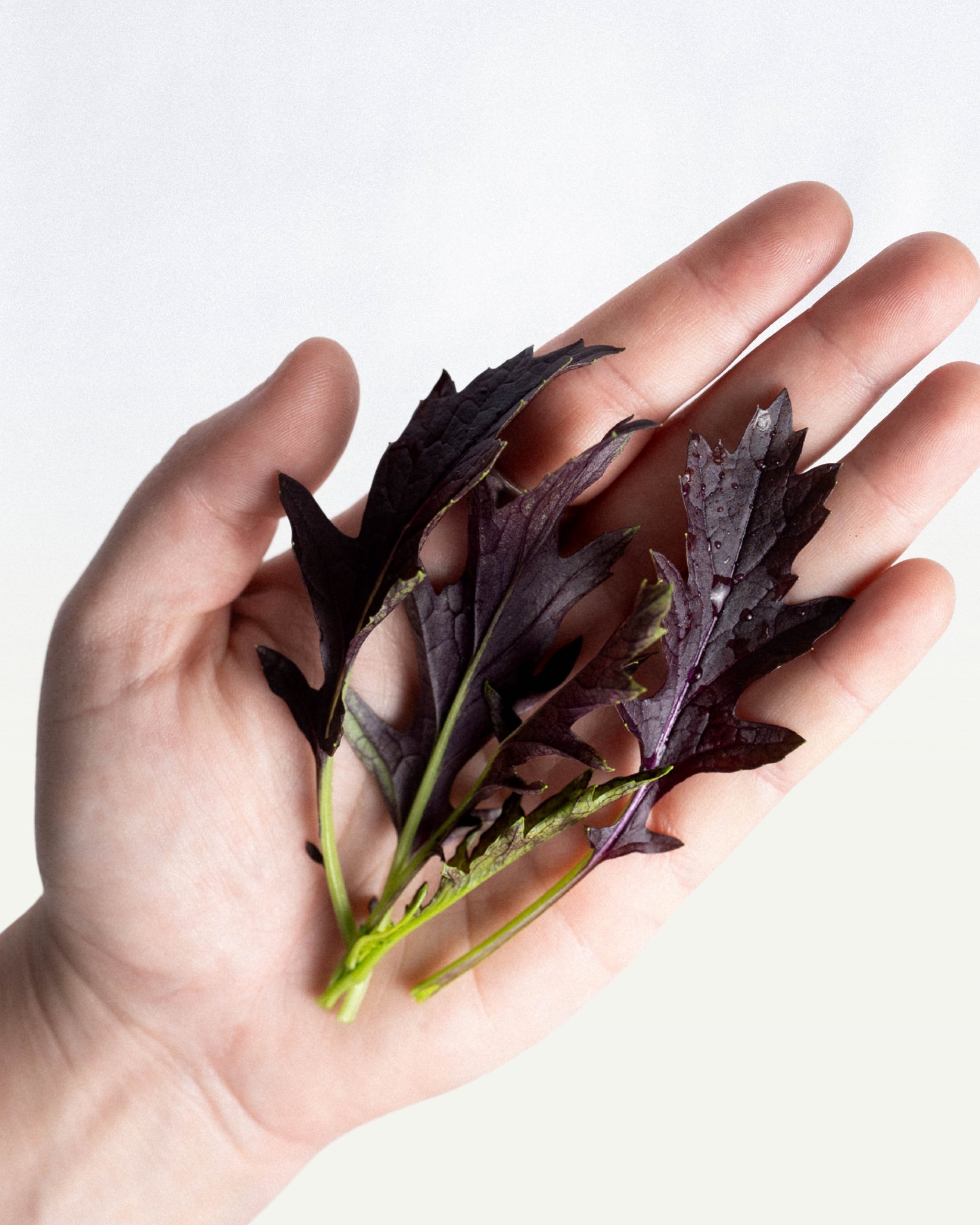 Peppery and crisp with beautiful purple-red tones, Red Mizuna brings brightness and gentle heat. Wonderful in raw applications or as a refreshing finish.